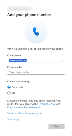 - After clicking “Set up a different way to sign in”, you’ll be prompted to choose between: