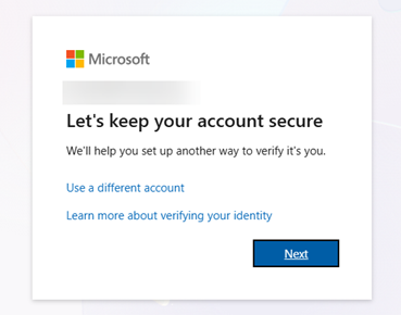 - The next page will recommend installing Microsoft Authenticator, but you can choose Hardware Token (if one has been supplied to you), Phone (text or call), and/or Email.