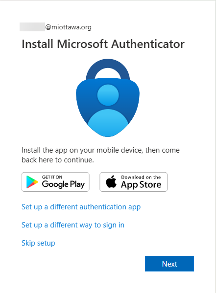 - If you would like to set up Authenticator on your iOS or Android device, click “Next” and follow the setup process to complete.